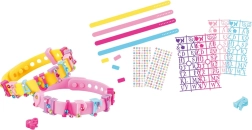 Ustvarite svoje izvirne nakitne kose s tem kreativnim DIY kompletom. Vsebuje 4 nastavljive gumijaste zapestnice v različnih barvah, bogat izbor črkovnih obeskov za personalizacijo imen in napisov ter barvite nalepke za dodatno okrasitev. Odlična zabava, ki spodbuja kreativnost in fino motoriko ter spremeni vsako zapestnico v edinstven modni dodatek.