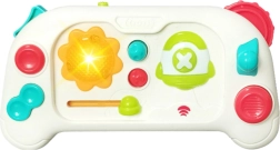 Ta simpatični upravljalnik po videzu spominja na pravi igralni gamepad, zato takoj pritegne pozornost malih raziskovalcev. Združuje svetlobne in zvočne učinke z mehanskimi elementi, da otroke naravno motivira k raziskovanju in urjenju spretnosti. Premišljeni premični elementi, kot so raketa, sonček ali zvonček, vabijo k eksperimentiranju ter krepijo potrpežljivost in zbranost.
