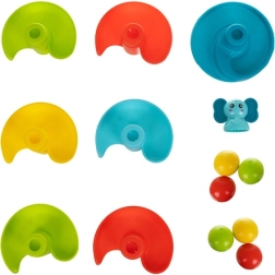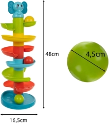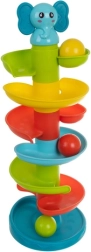 Zabaven in varen stolp z žogicami za najmlajše od 18 mesecev ponuja spiralni spust, žive barve in preprost mehanizem, ki otroke znova in znova motivira k igri. Spodbuja fino motoriko, koordinacijske sposobnosti in logično razmišljanje. Enostavno se sestavi in pospravi ter izpolnjuje evropske varnostne standarde.