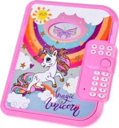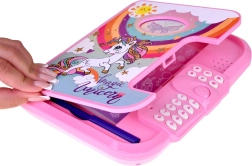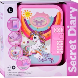 Interaktivni dnevnik s samorogom je sanjski prostor za vse otroške misli, risbe in skrivnosti. Po vnosu pravilne kode se dnevnik odpre in razkrije rožnat zvezek, pisalni flomaster in skrivni predal za drobne zaklade. Sprednji okvirček lahko prilagodite z zamenljivo slikico.