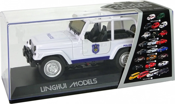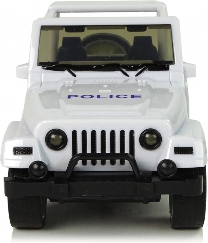 Postanite varuh zakona in se podajte v akcijo! Belo terensko policijsko vozilo je odlična izbira za otroke, ki obožujejo akcijo in pustolovščine. Kompaktne mere se lepo prilegajo otroški roki, medtem ko gumijaste pnevmatike in pull-back pogon poskrbijo za zabavno vožnjo na kratke razdalje. Avto ima odpirajoča se sprednja vrata, podrobno notranjost in modre policijske elemente z napisom POLICE.