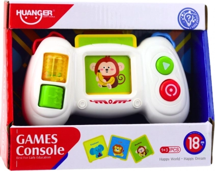 Del paketa so barvne kartice, ki jih je mogoče vstaviti v konzolo. Z njimi se otroci učijo prepoznavati živali, prevozna sredstva in predmete iz okolja, s čimer urijo spomin in osredotočenost. Kompaktne mere jo naredijo odličnega spremljevalca doma in na poti.