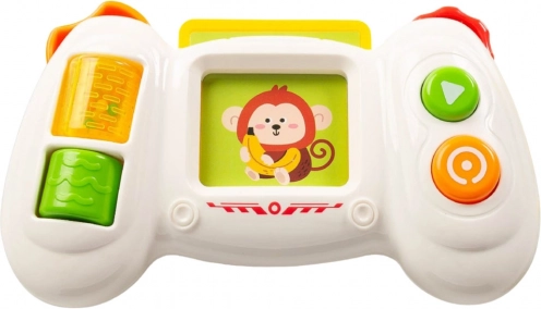 Interaktivna konzola je zasnovana za majhne otroške roke – je lahka, ergonomična in enostavna za držanje. Z vgrajenimi melodijami in zvoki otroci odkrivajo svet skozi igro, urijo ritem in odziv na dražljaje. Barvni gumbi in raznolike površine spodbujajo tip in podpirajo razvoj koordinacije oko–roka.