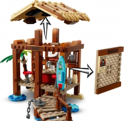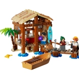 Odkrijte atmosferično plažno kočo na kolih s pomolom, palmo in piratskim čolničem. Odstranljiva streha razkrije dovršen notranji prostor trgovine s pultom, pijačami in zalogami. Na steno lahko pritrdite plakat »WANTED« in dodajate še druge iz serije ONE PIECE. Komplet je idealen za ljubitelje animeja in piratov, ki želijo poustvariti ikonične prizore ali ustvarjati lastne zgodbe.