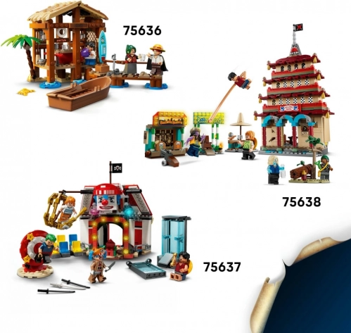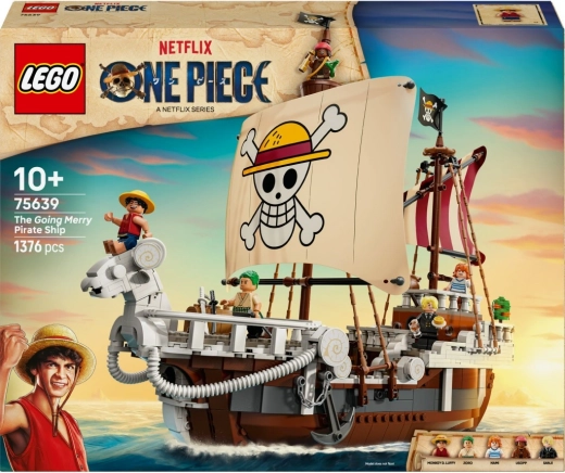 Priloženih je pet minifigur: Monkey D. Luffy (na galionu s skritim topom), Zoro, Nami (pri krmilu s svojimi mandarinami), Usopp (na jamboru v košari) in Sanji (na poti v kuhinjo). Ne manjkajo plakati z razglasom o iskanju in možnost razširitve zabave z aplikacijo LEGO Builder s 3D-pogledi, vrtenjem modela in sledenjem napredku.