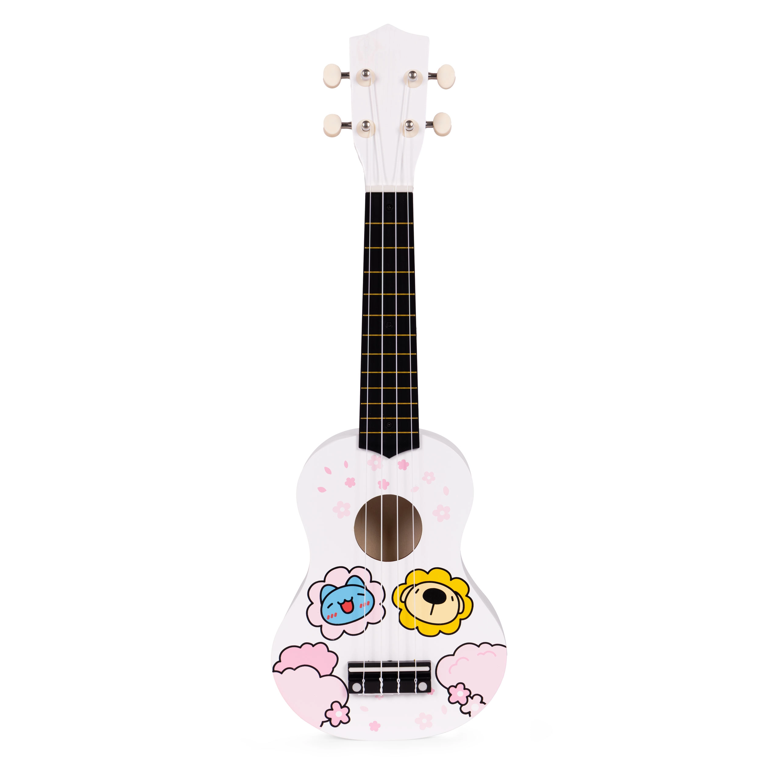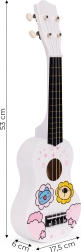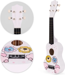 Otroško ukulele ECOTOYS je odlična izbira za male glasbenike od 3. leta dalje. Zahvaljujoč možnosti uglaševanja in realistični zasnovi se otroci zlahka naučijo osnovnih akordov in melodij. Leseno telo v kombinaciji z najlonskimi strunami nudi prijeten, mehak ton in udobno igranje že od prvih poskusov. Vesel potisk prinese radost vsakemu domačemu koncertu in vrtčnemu nastopu.