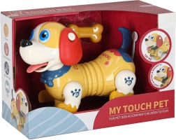 Pobožajte kužka po glavi ali telesu in sprožile se bodo zabavne reakcije: angleške fraze, melodije in svetleče oči, ki spodbujajo učenje in igro.