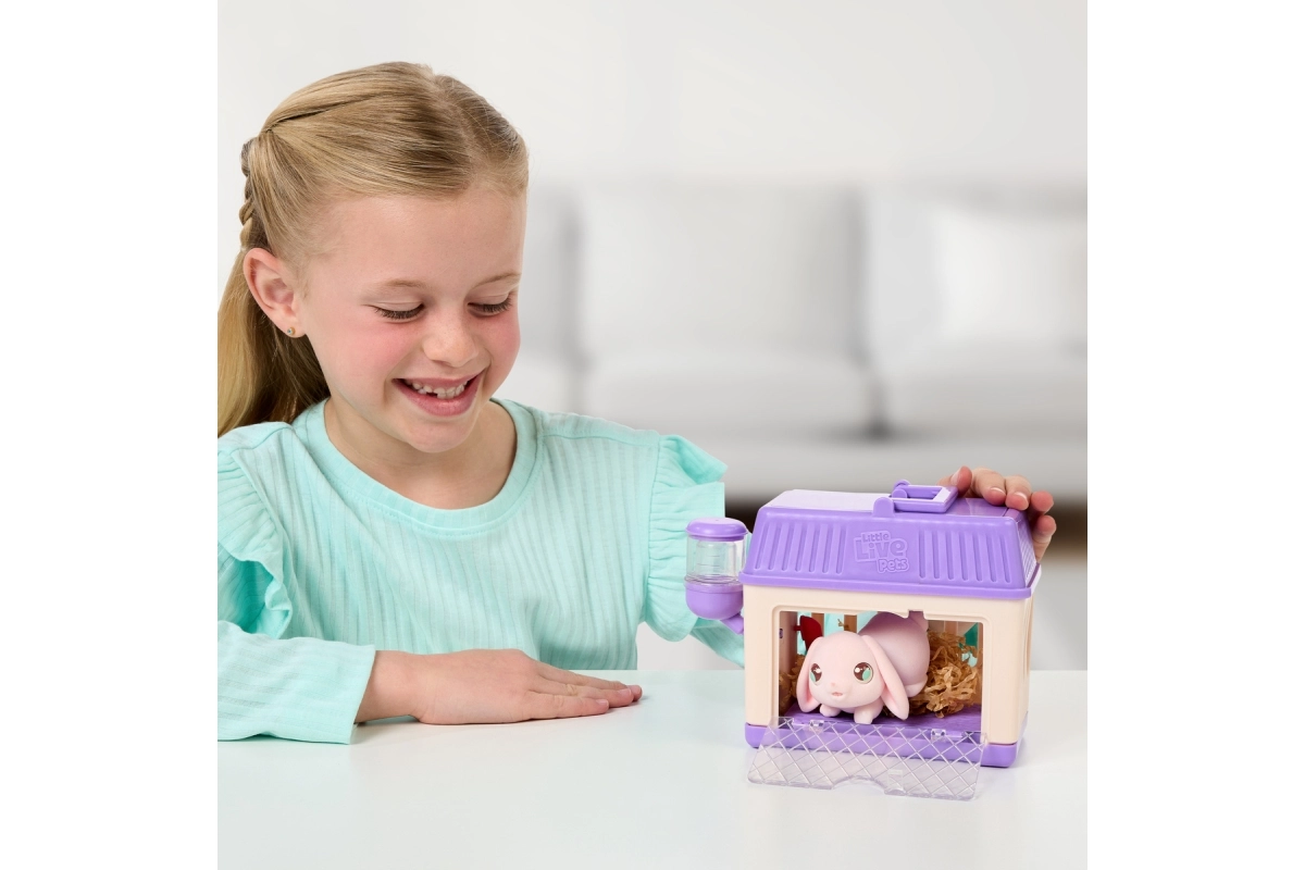 Odkrijte svet prisrčnih zajčkov z Little Live Pets – Mama Surprise. Poskrbite za mamico, pobožajte jo, nahranite jo in jo namestite v kletko. Po dodajanju vode v napajalnik vas približno po 60 minutah čaka presenečenje v obliki majhnih zajčkov. Igro lahko ponavljate in omogočite, da se mladički pojavijo tudi takoj po namestitvi mamice v kletko.