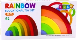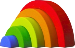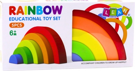 Barvita mavrična sestavljanka iz mehke gume je varna senzomotorična igrača za najmlajše, ki spodbuja ustvarjalnost, logično razmišljanje in koordinacijo. Pet prožnih delov različnih velikosti omogoča prosto sestavljanje in neskončne kombinacije, mehki material in zaobljene oblike pa zagotavljajo udobno in varno igro.