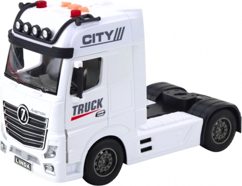 Ta velika cisternska kompozicija je idealna za male ljubitelje tehnike in tovornih vozil. Interaktivni elementi, kot so gumbi na strehi kabine, hupa ter svetlobni in zvočni učinki, ustvarjajo avtentično izkušnjo vožnje cisterne. Otroci lahko rezervoar napolnijo z vodo in jo s pomočjo črpalke črpajo, kar igro naredi še bolj realistično.