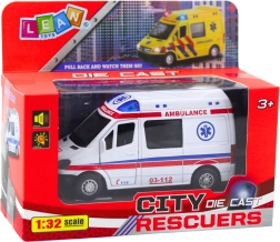 - reševalna vozila 1:32 s pogonom pull-back, 3× baterija AG13, embalaža proizvajalca