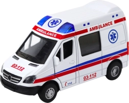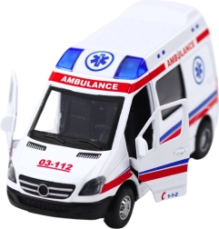 Ta podrobno izdelana reševalna vozila 1:32 zvesto posnema pravi reševalni avtomobil. Kovinska karoserija v kombinaciji s trpežno plastiko daje modelu dolgo življenjsko dobo in privlačen videz. Bela barva s potiskom »Ambulance« poudarja realističen značaj igrače.