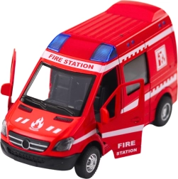 Odkrijte podrobno izdelan gasilski model v merilu 1:32, ki zvesto posnema pravo interventno vozilo. Robusten sestav iz kovine in kakovostne plastike zagotavlja dolgo življenjsko dobo, medtem ko rdeča izvedba z potiski "FIRE STATION" dodaja pristnost. Pull-back pogon preprosto navijete nazaj in vozilo samo steče naprej, kar okrepi akcijsko igro.