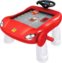 Rdeči simulator vožnje v obliki elegantne mizice spominja na sprednji del športnega avtomobila in takoj pritegne z izrazitim dizajnom. Otroci upravljajo avtomobilčke s ročnim vrtljivim gumbom in volanom, izogibajo se oviram ter urijo logično razmišljanje in pozornost. Zaradi robustne plastične zasnove je igrača stabilna, vzdržljiva in idealna za vsakodnevno igro brez potrebe po baterijah.