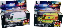 Vnesite več realizma v otroške misije z natančno izdelanimi modeli reševalnih vozil v dizajnu, znanem s slovenskih cest. Na voljo sta 2 različici – reševalno vozilo ali policija. Pogon pull-back poskrbi za živahno vožnjo, medtem ko svetlobne utripalnice in zvok še poudarijo vzdušje reševalne akcije.