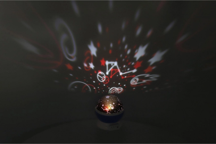 Vnesite v otroško sobo čarobno vzdušje s stilskim projektorjem, ki projicira zvezdnato nebo. Odličen za mirno uspavanje, večerni počitek in sprostitev pred spanjem. Ponuja napajanje na baterije ali prek USB, enostavno upravljanje in varno plastično ohišje.