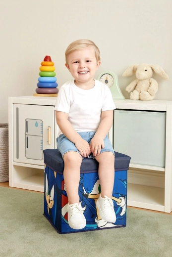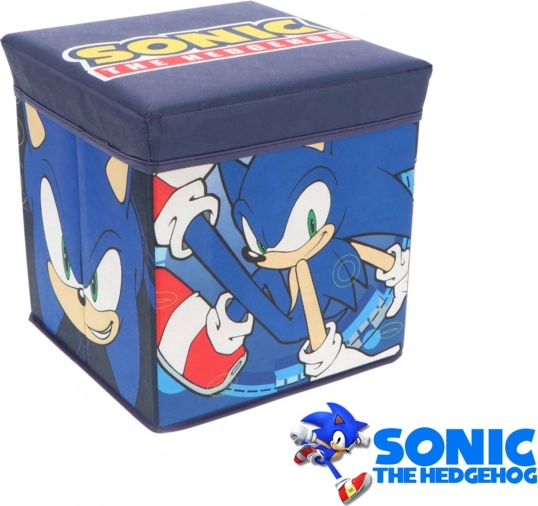 Slogovna in praktična shranjevalna škatla z motivom SONIC hkrati služi kot taburet z močnim pokrovom za udobno sedenje. Zahvaljujoč zložljivi konstrukciji prihrani prostor, pomaga ohranjati red v otroški sobi ter shrani igrače, knjige in kocke. Nosilnost pokrova 80 kg, prostornina 27 l in standardna velikost 30 × 30 × 30 cm se prilegajo večini policnih organizatorjev.