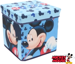 Praktična in trpežna škatla 2 v 1 združuje shranjevalni prostor s prostornino 27 l in udobno sedenje. Zaradi licenčnega dizajna MICKEY MOUSE bo navdušila male oboževalce in hkrati pomagala ohranjati red v sobi. Ko je ne uporabljate, jo preprosto zložite na ravno in prihranite prostor.