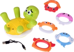 Želva je izdelana iz kakovostne plastike, varne za otroke, ima vgrajeni akumulator z USB polnjenjem in je idealna za kad, bazen ali vodne igre na plaži. Odlična je tudi kot darilo – priložena v estetski barvni embalaži.
