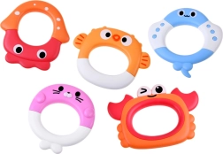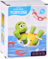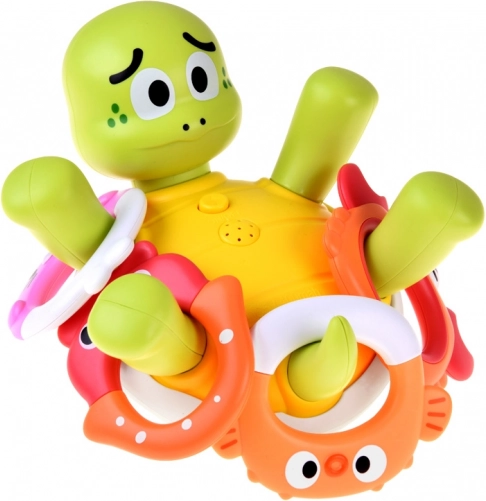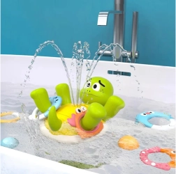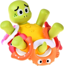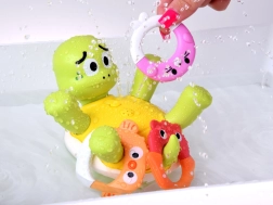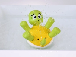 Ta ljubka želveka ob stiku z vodo začne pršiti nežne curke, kar otroke navduši in jim pomaga vzljubiti vodo. Priložena so zamenljiva barvna koleščka z različnimi vzorci, ki spreminjajo videz igrače in ohranjajo otrokovo pozornost med kopanjem.