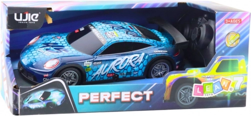 RC dirkalni avto 27 MHz s svetlečo karoserijo, moder. Trpežni materiali, preprosto upravljanje naprej/nazaj in levo/desno. Zabava doma in na prostem.
