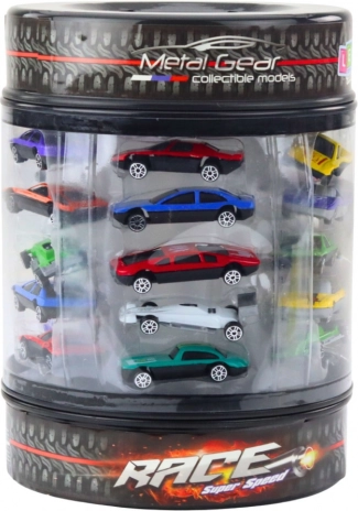 Zahvaljujoč praktični prozorni tubi imate celotno zbirko vedno pri roki in varno shranjeno. Set spodbuja ustvarjalnost, razvija domišljijo ter prinaša dolge ure zabave pri dirkanju na domačih stezah.