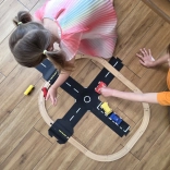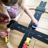 Praktičen dodatek k setoma Mesto in Metropola prinaša univerzalno rešitev v obliki obojestranskih kosov: na eni strani majhno krožišče, na drugi X-križišče. Tako lahko otroci zlahka spreminjajo smer vožnje, povezujejo poti in ustvarjajo nove igralne scenarije doma in na prostem.