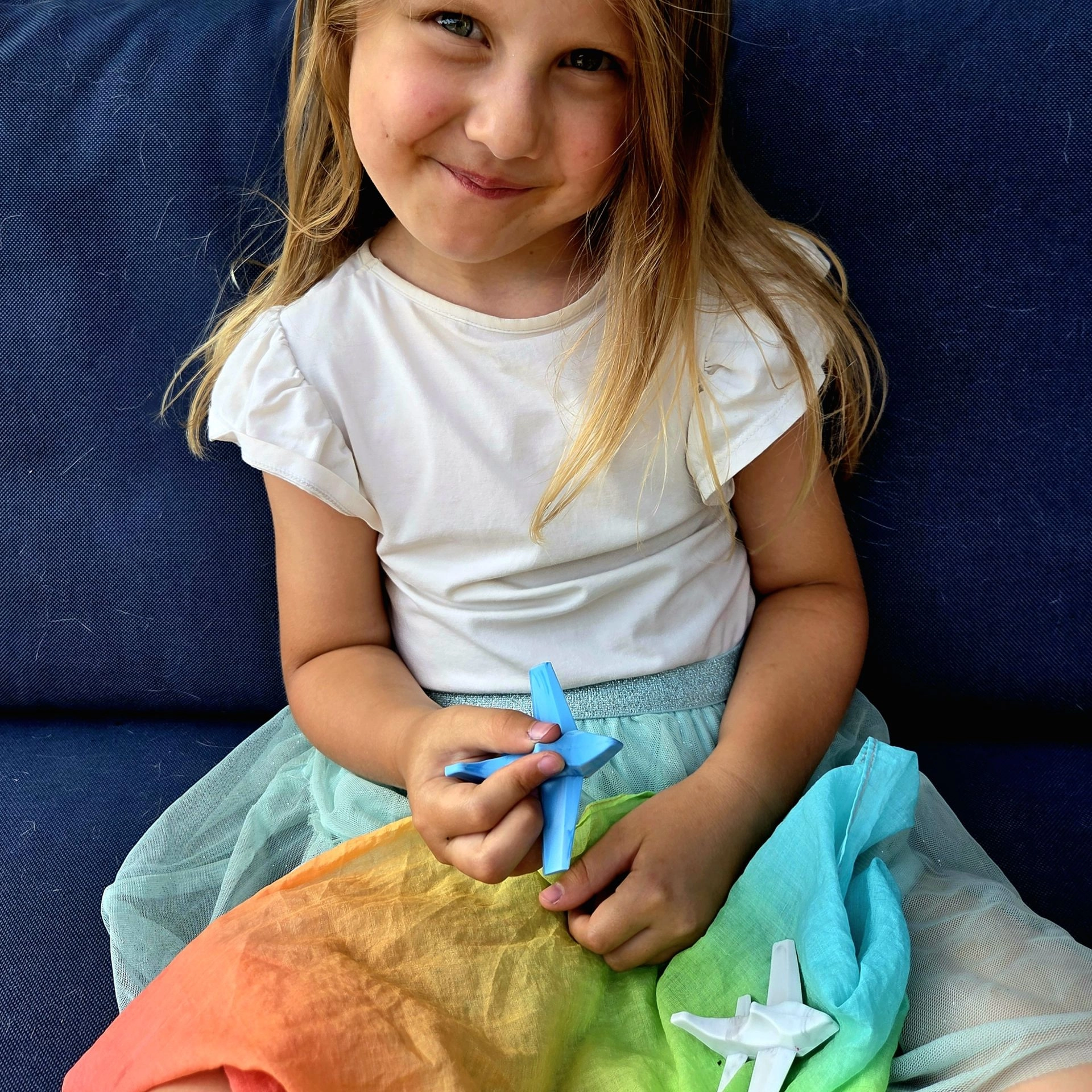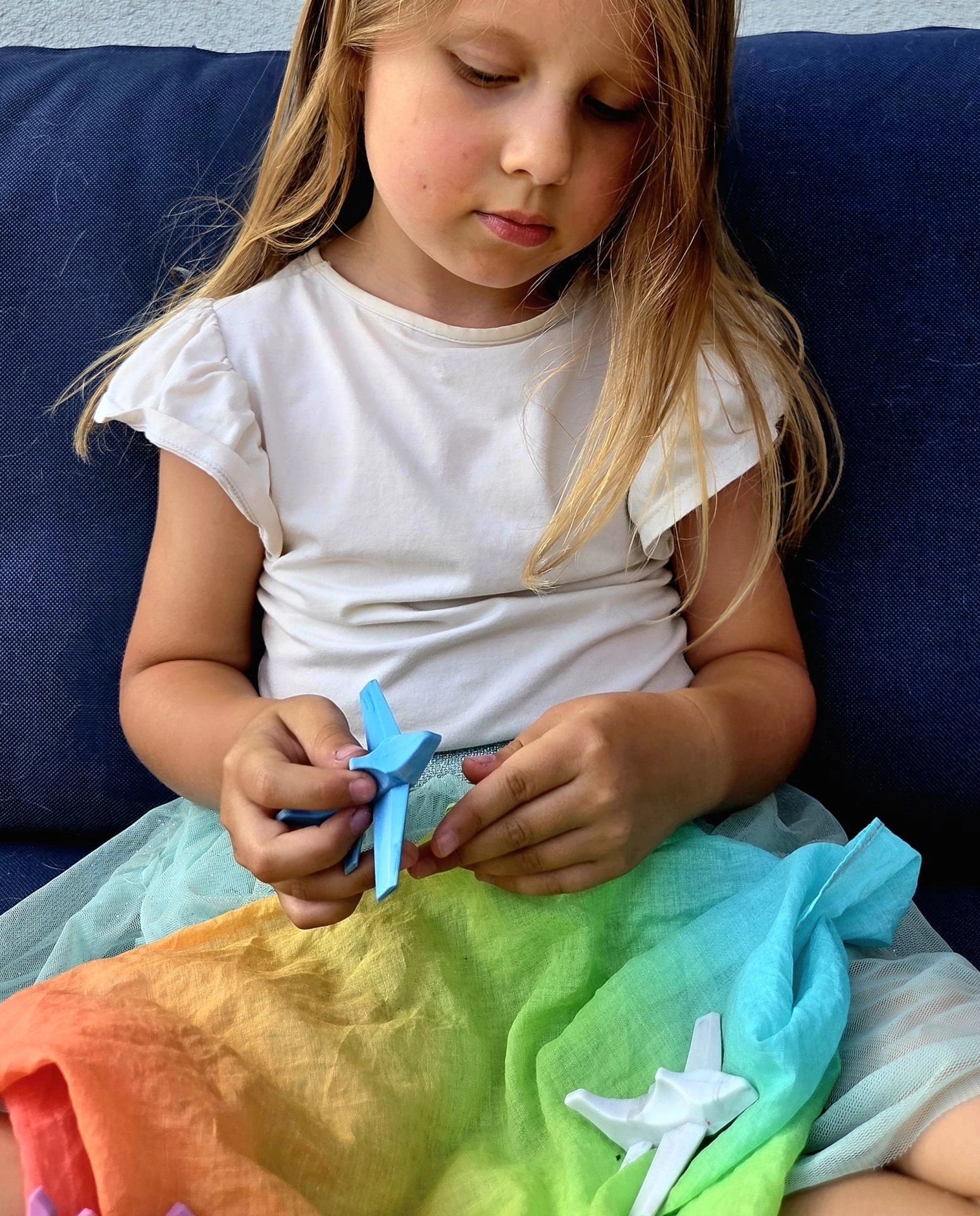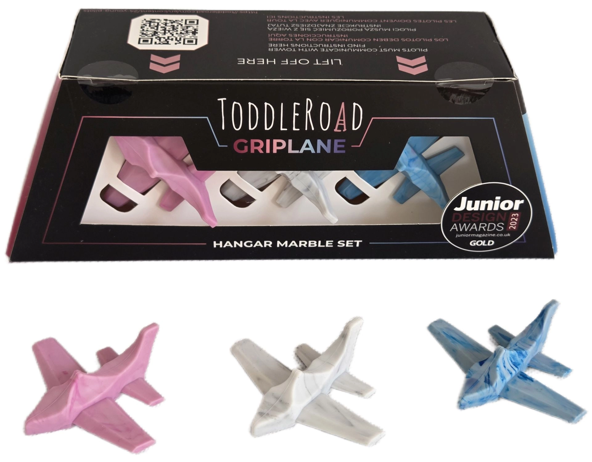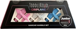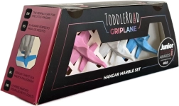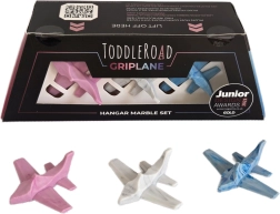 Komplet Hangár Marble je idealen dodatek k kompletu Letališče in otrokom prinaša veselje do proste, varne in domišljijske igre. Tri silikonska letala v nežnih pastelnih barvah z učinkom marmoriranja odlično sedejo v otroško roko in zaradi prijetnega materiala spodbujajo senzorično zaznavanje.