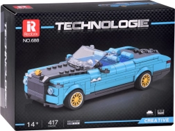 Stilski model za ljubitelje klasične motorizacije: tehnična sestavljanka ustvari eleganten retro kabriolet v globoki modri barvi z zlatimi kolesi. Komplet vsebuje 417 natančnih delov, ponuja srednje zahtevno gradnjo ter razvija prostorsko domišljijo, logično mišljenje in ročne spretnosti.