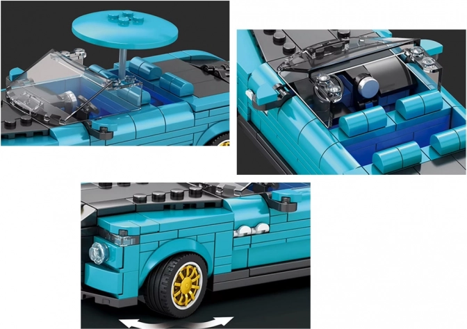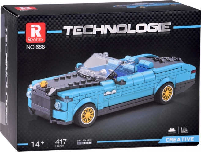 Tehnična sestavljanka – moder retro kabriolet z zlatimi kolesi, 417 delov