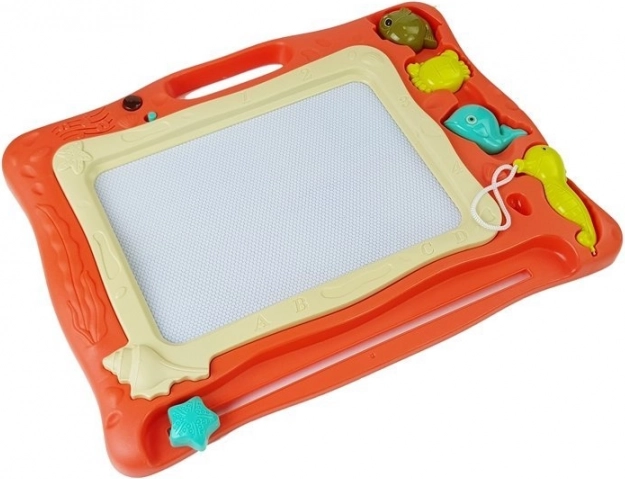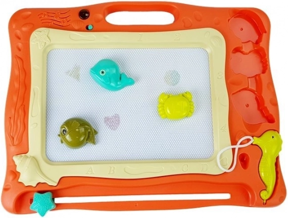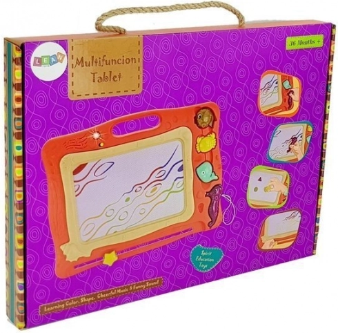 Odkrijte zabavno in ustvarjalno igračo za otroke – magnetno tablico, na kateri lahko otroci znova in znova rišejo in pišejo. S posebnim pisalom in žigi nastajajo barvite oblike, ki jih zlahka izbrišete s pomičnim drsnikom. Tablica ponuja tudi svetlobne učinke in zvočno spremljavo, spodbuja fino motoriko, ustvarjalnost in grafomotorične spretnosti. Idealno darilo za otroke od 3 let.