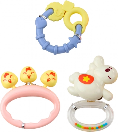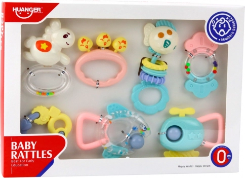 Barviti komplet ropotuljic in grizal je idealen za najmlajše že od prvih dni življenja. Igrače so zasnovane tako, da spodbujajo čutni razvoj, urijo fino motoriko in lajšajo izraščanje zobkov. Zaradi različnih oblik, barv in tekstur otrok odkriva svet z dotikom, vidom in sluhom.