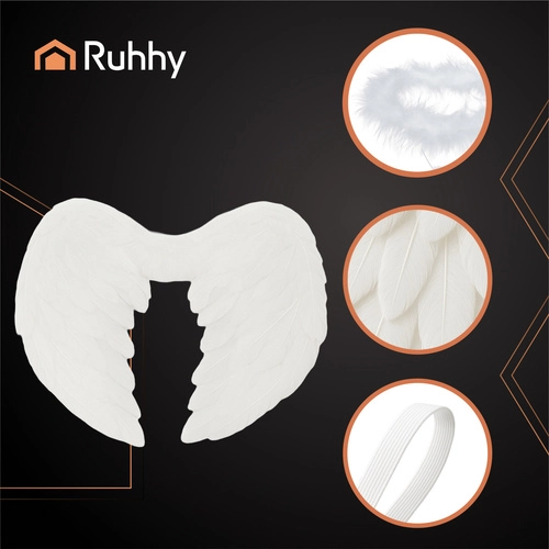 V hipu ustvarite angelsko vzdušje. Komplet angelskih kril z avreolo RUHHY je lahek, udoben in vizualno izrazit – idealen za like angela, vile, vilinke in fantazijske like. Snežno bel odtenek in pernata obroba ustvarjata eteričen videz, ki izstopa v živo in na fotografijah.