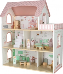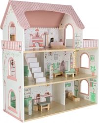 Hišica za punčke Lulilo Peonio je čudovita trietažna hiša v rožnato‑metini kombinaciji s potiski interierjev, stopniščem in balkonom. Topla LED lučka večerni igri doda čarobno vzdušje in naredi vsak prostorček bolj prijeten. Zahvaljujoč bogatemu kompletu pohištva bodo otroci zlahka opremili spalnico, dnevno sobo, kuhinjo in kopalnico.