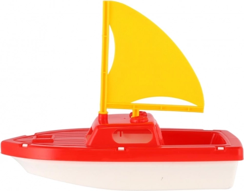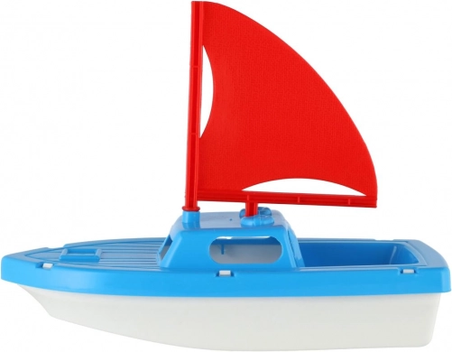 Na voljo v dveh privlačnih kombinacijah – rdeča z rumenim jadrom ali modra z rdečim jadrom. Nežni detajli trupa in kabine spodbujajo domišljijo ter razvijajo fino motoriko in ustvarjalno igro.