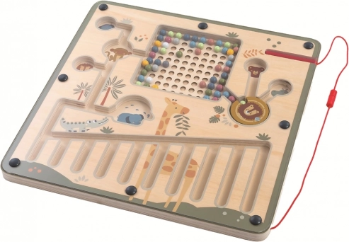 Odkrijte zabavno in poučno igračo za otroke od 3 let – magnetno igralno ploščo z motivom safarija. S priloženim magnetnim peresom otroci premikajo barvne kroglice po varnem labirintu ter tako urijo fino motoriko, koordinacijo oko–roka, logično razmišljanje in razvrščanje po količini. Prozoren pokrov poskrbi, da kroglice ne padejo iz plošče, zato je igra varna in brez nereda.
