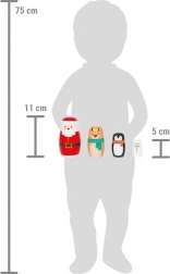 Odkrijte čar božiča z lesenim kompletom matrjošk SMALL FOOT. Barvno lakirane figurice se gladko odpirajo, manjši kosi pa se vstavljajo v večje. To spodbuja otroke k raziskovanju, vaji potrpežljivosti in razvoju fine motorike.