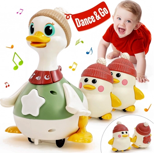 Odkrijte interaktivno igračo, ki podpira grobo in fino motoriko, koordinacijo roka–oko ter razumevanje vzroka in posledice. Mamica raca zna hoditi sama ali stati in peti, pri tem premika kljunček in na trebuščku ji sveti nežna zvezdica. Po daljši neaktivnosti se sama uspava, zato varčuje z baterijami.