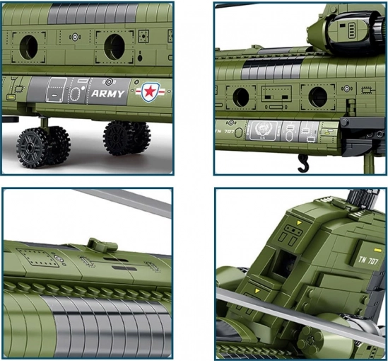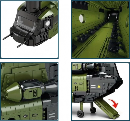 Ta podroben model transportnega helikopterja CH-47 CHINOOK znamke Reobrix bo navdušil ljubitelje letalstva, tehnike in militarije. Poudarek na realističnih funkcijah – od popolnoma vrtljivih tandemskih rotorjev preko odpirajoče se tovorne rampe do dodelanih notranjosti – naredi sestavljanko odlično izbiro za graditelje od 14 let dalje.