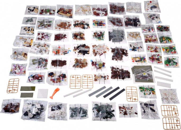 Set vsebuje 3087 kock, vključno z 49 prozornimi za vitraže, nalepke in pregleden ilustriran priročnik za tekoče sestavljanje.