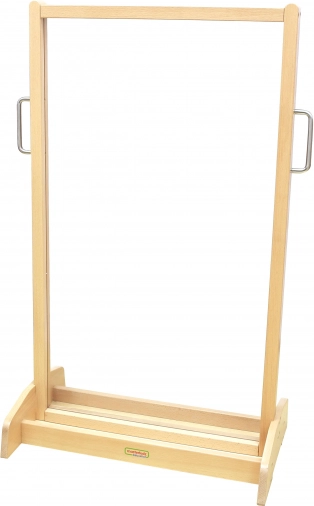 Dvostranska slikarska stojna tabla s prozornim akrilnim panelom omogoča otrokom slikanje po domišljiji ali po tem, kar vidijo pred seboj. Zaradi stabilne lesene konstrukcije in širokega podnožja je varna in primerna za vrtce, podaljšano bivanje ter otroške sobe. Prozorna površina spodbuja kreativnost in vizualno zaznavanje, medtem ko slikanje z obeh strani podpira timsko delo.