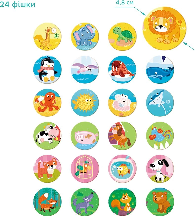 Ta prikupna namizna igra temelji na preprostem načelu: igralci imajo svojo tablo in nanjo postopoma prirejajo pravilne žetone z živalmi. Kdor prvi zapolni celotno kartico, zmaga. Idealno za otroke od 3 let naprej, bodisi za igro z starši ali v skupini.