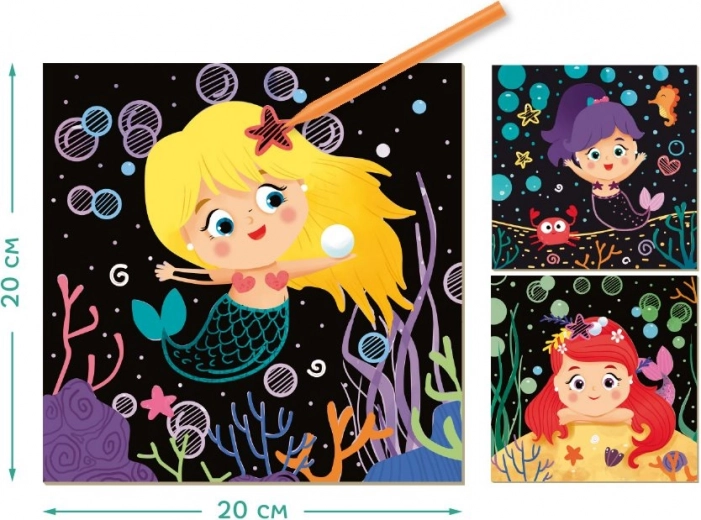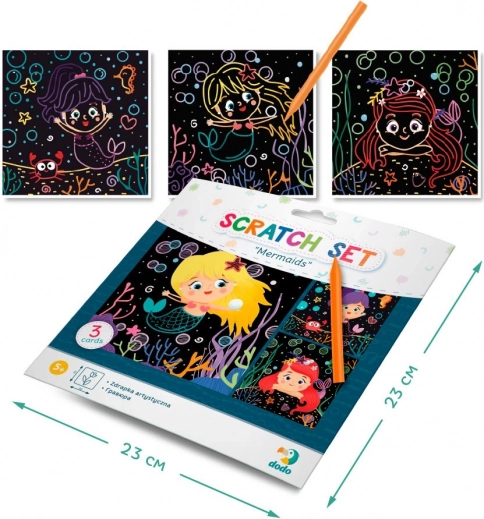 Set praskank DODO prinaša otrokom zabavo in razvoj veščin v enem. Zaradi spodnje barvne plasti se med praskanjem postopoma razkrivajo pisani motivi morskih deklic, ki bodo otroke navdušili.