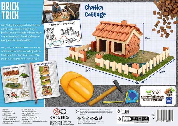 Trefl Brick Trick Eco koča – sestavljanka iz pravih mini opek (85 delov)