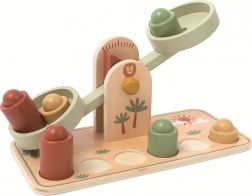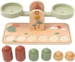 Igrača je navdihnjena z Montessori pedagogiko – podpira samostojno raziskovanje, razvoj fine motorike, koordinacije roka–oko in logičnega razmišljanja. Zaradi trdne lesene izdelave, gladkih robov in pomirjujočih pastelnih barv je tehtnica odličen dodatek otroški sobi in vrtcu.