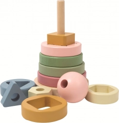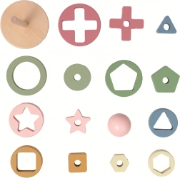 Otroci postopoma natikajo na leseno palčko obroče različnih velikosti, pri čemer ima vsak na sredini izrez – zvezdico, kvadrat, trikotnik in druge oblike. Ko so vsi deli pravilno na svojem mestu, se namesti okrogla glavica in možicelj je kompleten. Igra naravno spodbuja koncentracijo, potrpežljivost in veselje do odkrivanja.
