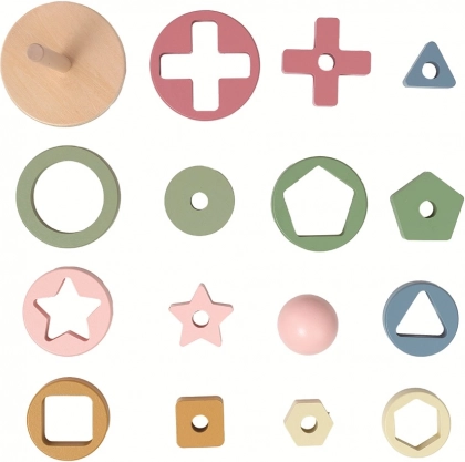 Odkrijte svet barv in oblik z leseno igračo za najmlajše! Ta pametna sestavljanka združuje vstavljanje in zlaganje obročev z različnimi izrezi, ki jih je treba pravilno poravnati. Razvija fino motoriko, koordinacijo oko-roka in prepoznavanje oblik ter velikosti. Naravna lesena izdelava v nežnih zemeljskih odtenkih se odlično poda v otroško sobo.