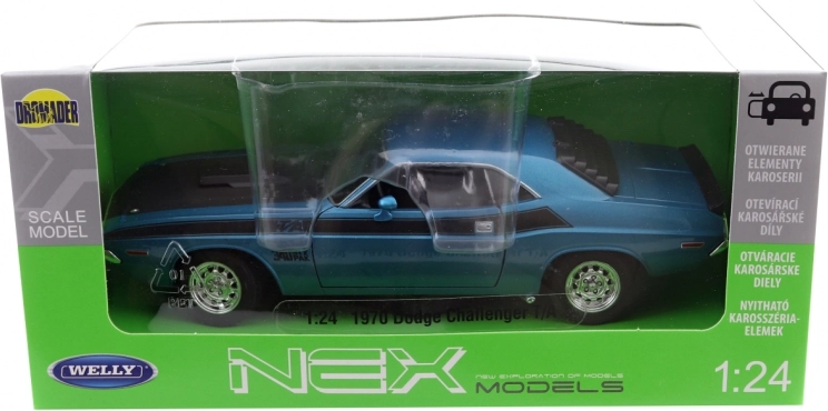 Podrobno izdelan kovinsko-plastični model vozila 1970 DODGE CHALLENGER T/A v merilu 1:24 bo navdušil zbiratelje in mlade navdušence. Ponuja odpirajoče se karoserijske dele ter kakovosten brizgan originalni avtolak, ki verno posnema izvirne odtenke.