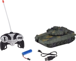 - RC tank, daljinski upravljalnik s prožno anteno, akumulator, USB polnilec