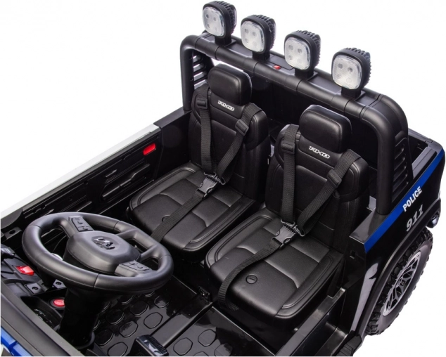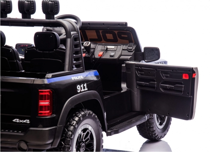 Dvosedežna zasnova z varnostnima pasovoma povečuje udobje in varnost, medtem ko robustna karoserija in odbijač poudarjata off-road značaj. Tovorni prostor in podrobne policijske nalepke (POLICE, 911) spodbujajo ustvarjalno igro in dolge ure zabave.